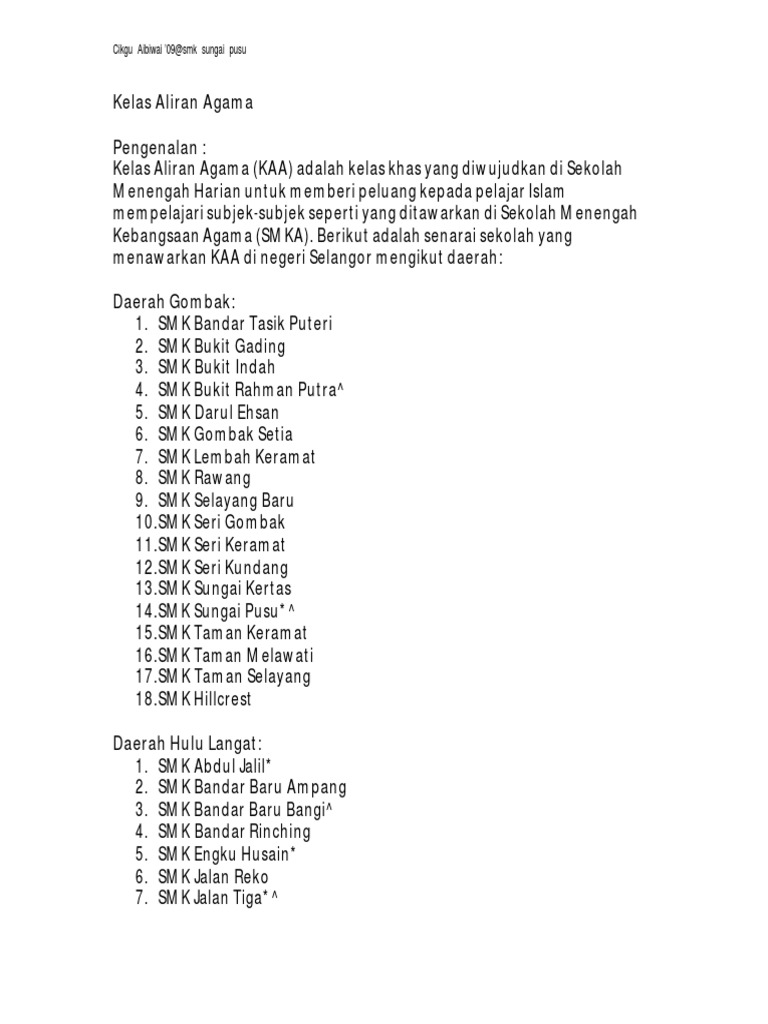 Kelas Aliran Agama Selangor Pdf